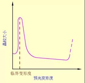 (2)預(yù)先變形度 變形度的影響主要與金屬變形的均勻度有關(guān)。變形越不均勻, 再結(jié)晶退火后的晶粒越大。變形度很小時(shí),因不足以引起再結(jié)晶,晶粒不變。當(dāng)變形度達(dá)到2~10%時(shí),金屬中少數(shù)晶粒變形,變形分布很不均勻,所以再結(jié)晶時(shí)生成的晶核少,晶粒大小相差極大,非常有利于晶粒發(fā)生吞并過程而很快長(zhǎng)大,結(jié)果得到極粗大的晶粒。使晶粒發(fā)生異常長(zhǎng)大的變形度稱作臨界變形度。生產(chǎn)上應(yīng)盡量避免在臨界變形度范圍內(nèi)的塑性變形加工。超過臨界變形度之后,隨變形度的增大,晶粒的變形更加強(qiáng)烈和均勻,再結(jié)晶核心越來越多,因此再結(jié)晶后的晶粒越來越細(xì)小。但是當(dāng)變形度過大(約≥90%)時(shí), 晶粒可能再次出現(xiàn)異常長(zhǎng)大,一般認(rèn)為它是由形變織構(gòu)造成的。