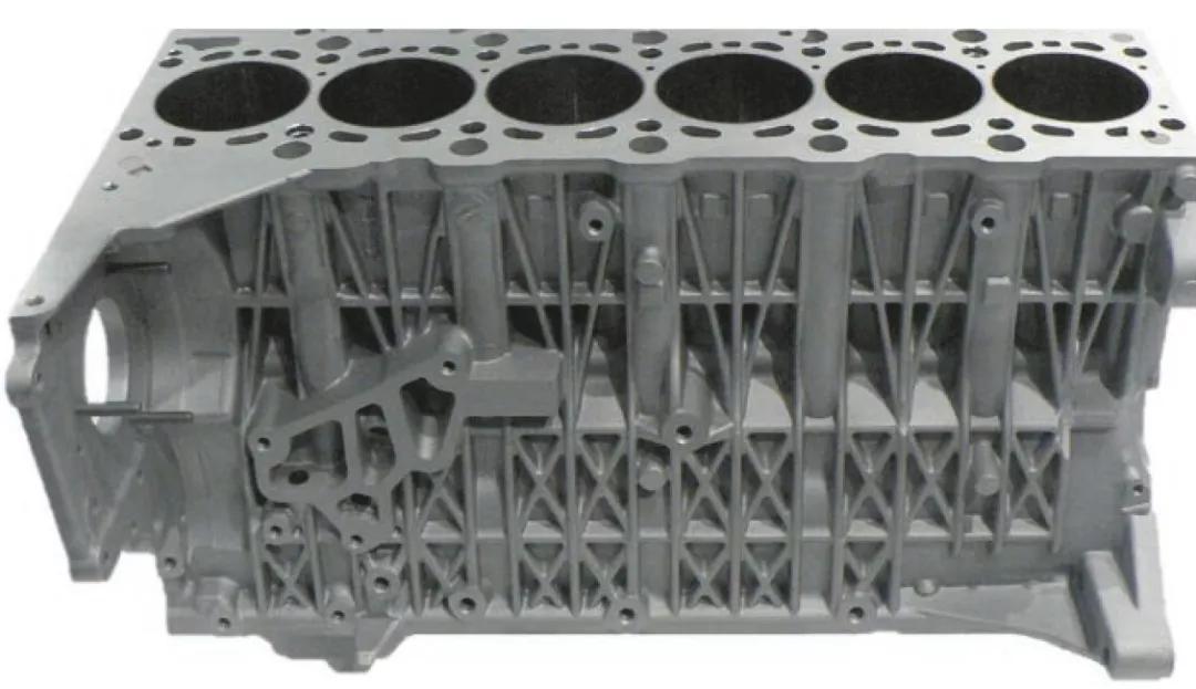 圖一 把氣缸發(fā)動(dòng)機(jī)曲軸箱內(nèi)的8個(gè)傳統(tǒng)灰鑄鐵鑲件換成熱熔噴涂鐵基涂層后,對(duì)氣缸孔區(qū)域內(nèi)鋁鑄件的孔隙率和力學(xué)性能要求非常高。