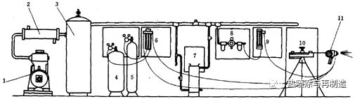 7-空氣凈化器;8-空氣控制器;9-空氣流量表;10-絲架;11-噴槍。