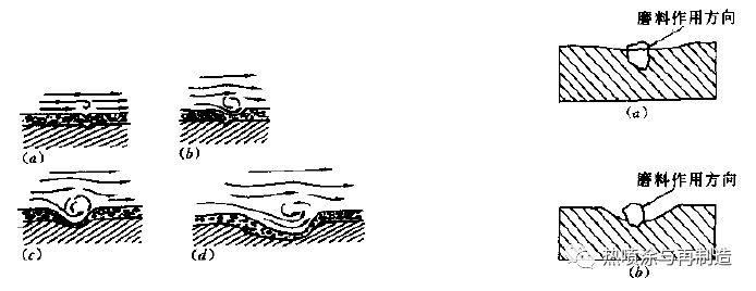 (2)電化學(xué)腐蝕磨損—電化學(xué)腐蝕磨損由于涉及的因素較多,是一個比氧化磨損更為復(fù)雜的過程,根據(jù)電化學(xué)腐蝕磨損過程中材料被去除的特點,人們提出了機械去除模型和腐蝕去除模型。