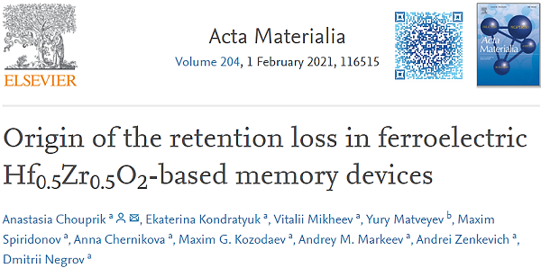 十年來,鐵電HfO2薄膜由于具有可縮放性和CMOS可集成性,因此作為一種可用于非易失性鐵電隨機(jī)存儲器的功能材料,得到了越來越多的關(guān)注。盡管在關(guān)鍵性能參數(shù)(尤其是讀出電荷和電壓以及耐用性)方面取得了顯著的進(jìn)步,但是所開發(fā)的器件只有在標(biāo)準(zhǔn)保留時間為10年的情況下才能實(shí)現(xiàn)電子工業(yè)的應(yīng)用。材料工程不僅可以改變鐵電性能,還可以修改保留時間。要了解如何保持足夠的保留時間,其背后的物理機(jī)制需要深入解讀。這項(xiàng)研究制造了具有高損耗保持率的電容器存儲單元。通過將器件性能與電容瞬態(tài)光譜法,動態(tài)現(xiàn)場原位硬XPS和原位PFM的測試結(jié)果進(jìn)行比較,發(fā)現(xiàn)損耗保持是由電容器電極界面處帶正電荷的氧空位的積累引起的;在信息的長期存儲過程中,電荷的重新分配完全由存儲單元中的疇結(jié)構(gòu)定義。十年來,鐵電HfO2薄膜由于具有可縮放性和CMOS可集成性,因此作為一種可用于非易失性鐵電隨機(jī)存儲器的功能材料,得到了越來越多的關(guān)注。盡管在關(guān)鍵性能參數(shù)(尤其是讀出電荷和電壓以及耐用性)方面取得了顯著的進(jìn)步,但是所開發(fā)的器件只有在標(biāo)準(zhǔn)保留時間為10年的情況下才能實(shí)現(xiàn)電子工業(yè)的應(yīng)用。材料工程不僅可以改變鐵電性能,還可以修改保留時間。要了解如何保持足夠的保留時間,其背后的物理機(jī)制需要深入解讀。這項(xiàng)研究制造了具有高損耗保持率的電容器存儲單元。通過將器件性能與電容瞬態(tài)光譜法,動態(tài)現(xiàn)場原位硬XPS和原位PFM的測試結(jié)果進(jìn)行比較,發(fā)現(xiàn)損耗保持是由電容器電極界面處帶正電荷的氧空位的積累引起的;在信息的長期存儲過程中,電荷的重新分配完全由存儲單元中的疇結(jié)構(gòu)定義。十年來,鐵電HfO2薄膜由于具有可縮放性和CMOS可集成性,因此作為一種可用于非易失性鐵電隨機(jī)存儲器的功能材料,得到了越來越多的關(guān)注。盡管在關(guān)鍵性能參數(shù)(尤其是讀出電荷和電壓以及耐用性)方面取得了顯著的進(jìn)步,但是所開發(fā)的器件只有在標(biāo)準(zhǔn)保留時間為10年的情況下才能實(shí)現(xiàn)電子工業(yè)的應(yīng)用。材料工程不僅可以改變鐵電性能,還可以修改保留時間。要了解如何保持足夠的保留時間,其背后的物理機(jī)制需要深入解讀。這項(xiàng)研究制造了具有高損耗保持率的電容器存儲單元。通過將器件性能與電容瞬態(tài)光譜法,動態(tài)現(xiàn)場原位硬XPS和原位PFM的測試結(jié)果進(jìn)行比較,發(fā)現(xiàn)損耗保持是由電容器電極界面處帶正電荷的氧空位的積累引起的;在信息的長期存儲過程中,電荷的重新分配完全由存儲單元中的疇結(jié)構(gòu)定義。