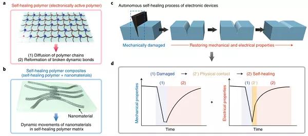 斯坦福大學鮑哲南教授團隊回顧了自修復電子材料的發(fā)展,并研究了這些材料如何用于制造自修復的電子設(shè)備。同時文中探討了自修復電子系統(tǒng)的潛在新功能,這些功能通常在傳統(tǒng)電子系統(tǒng)中是不可能實現(xiàn)的,并討論了為實際應(yīng)用提供自修復柔性電子系統(tǒng)的當前挑戰(zhàn)。