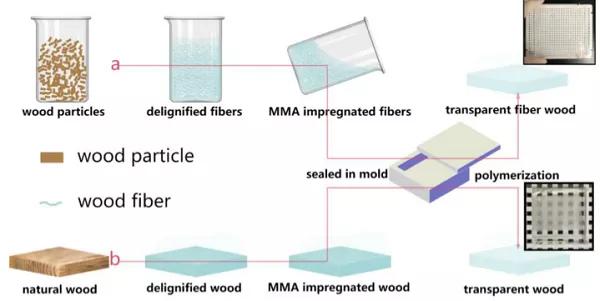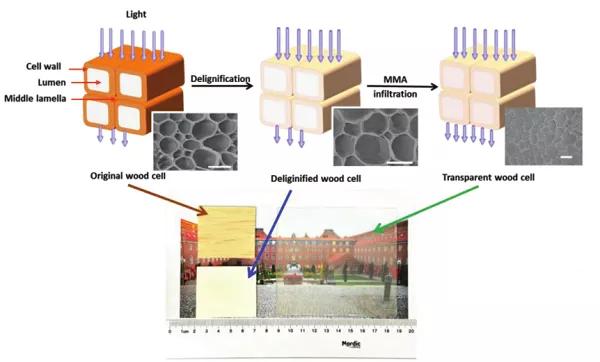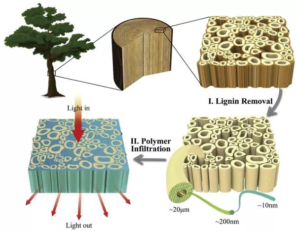 圖11 通過脫木素方法制備透明木材的示意圖。