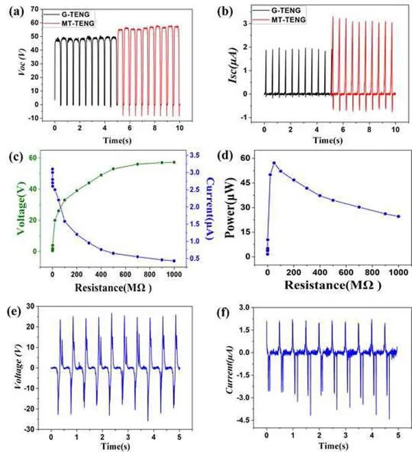 圖二、MT-TENG的結(jié)構(gòu)和摩擦電極形貌