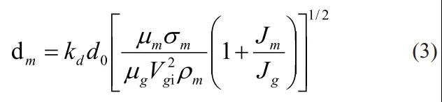 其中,dm 為粉末平均粒度,kd 為常數(shù),一般為 40-50,d0 導(dǎo)流管直徑,Jm 為液態(tài)金屬流量,Jg為氣體流量,μm 和μg 分別為液態(tài)金屬和氣體的動(dòng)力黏性系數(shù),Vgi 為霧化氣流場的初始流速,σm 為液態(tài)金屬表面張力,ρm和ρg分別為液態(tài)金屬的流體密度和氣體的密度。