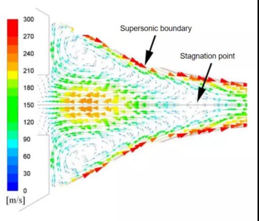 圖 2 Fluent 計(jì)算模擬的霧化流場結(jié)果(速度場)
