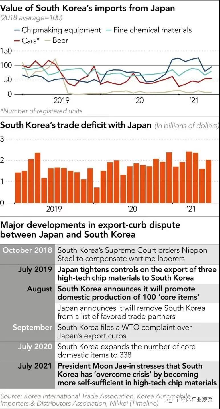 這樣看起來,韓國去年從日本進口的光刻膠整體實際增長 22% 至 3.2829 億美元,然后在 2021 年前六個月同比增長 3%。日本產(chǎn)品仍占進口總額的 80% 以上。