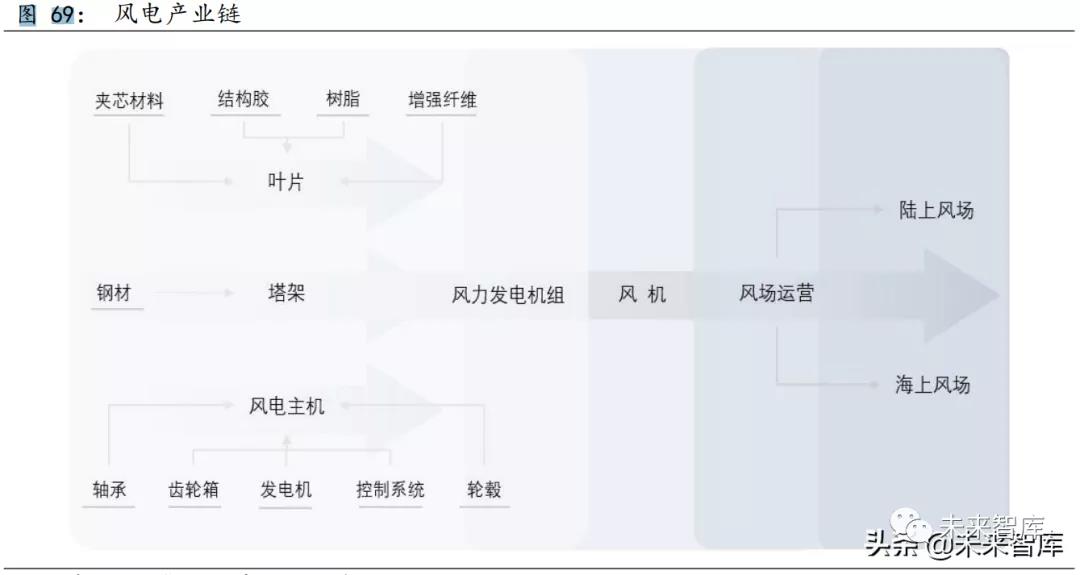在我國,風力發(fā)電的工業(yè)體系完整,產(chǎn)業(yè)基礎(chǔ)完善,是目前新能源發(fā) 電技術(shù)中最成熟、最具規(guī)模化的發(fā)電方式之一。整個產(chǎn)業(yè)鏈主要涵蓋原材 料加工、零部件制造、整機制造、開發(fā)建設(shè)、技術(shù)研發(fā)、標準和檢測認證 體系等環(huán)節(jié),屬于技術(shù)密集型行業(yè)。近年來,隨著技術(shù)的進步,機組開發(fā)逐漸向大兆瓦、智能化、數(shù)字化發(fā)展。