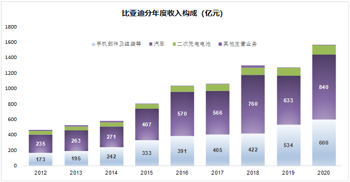比亞迪的多元化,本質(zhì)上還是一種降低風(fēng)險(xiǎn)的方式,所謂的“船大不怕浪高”。比亞迪一開(kāi)始先做手機(jī)電池,后又進(jìn)入手機(jī)代工,隨后又去做汽車。在2010年比亞迪汽車銷量見(jiàn)頂后的10年里,比亞迪靠手機(jī)代工的現(xiàn)金流支撐著汽車部門(mén),讓比亞迪能夠活到自己的新能源汽車部門(mén)見(jiàn)到光明的那一天。