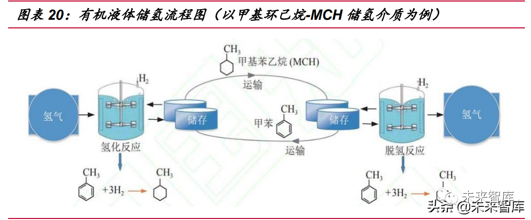 有機液體儲氫技術(LOHC)基于不飽和液體有機物在催化 劑作用下進行加氫 反應,生成穩(wěn)定化合物,當需要氫氣時再進行脫氫反應。