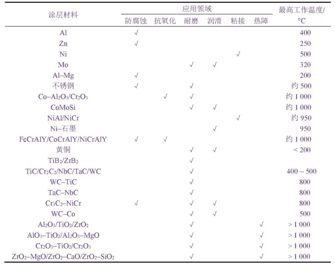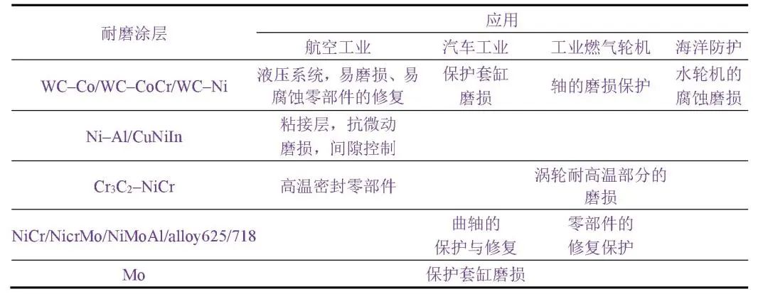 不同熱噴涂耐磨涂層的應(yīng)用領(lǐng)域