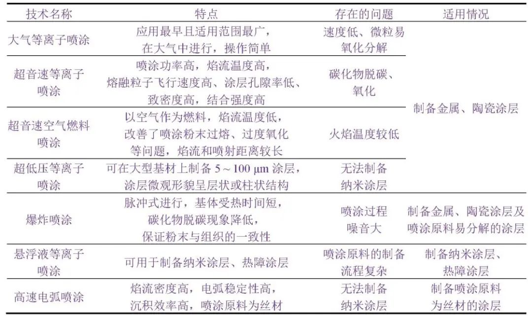 不同熱噴涂工藝的優(yōu)缺點(diǎn)及適用情況