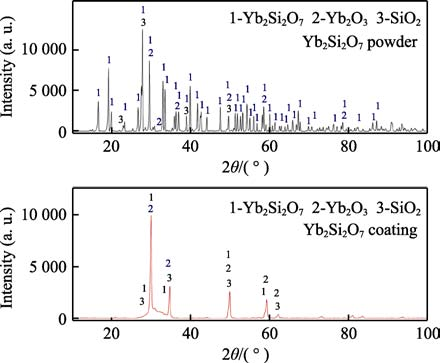 圖 8 Yb2Si2O7 涂層和 Yb2Si2O7 粉的 XRD 圖譜