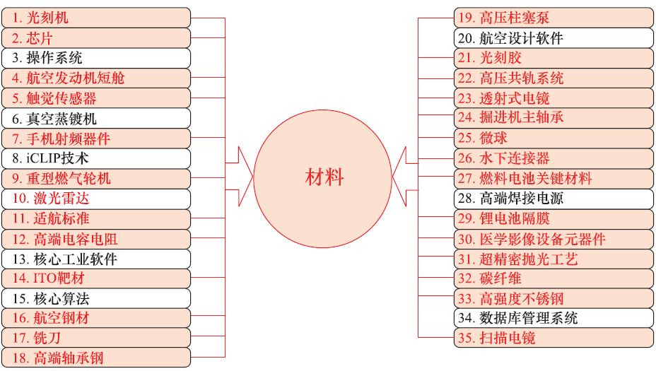 ▲ 《科技日報》列出的與材料相關(guān)的“卡脖子”技術(shù)清單