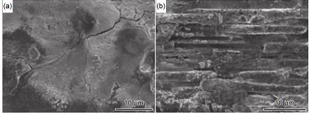 圖 4 PIP-C/SiC 復合材料的表面和截面:(a)C/SiC 復合材料的表面;(b)C/SiC 復合材料的截面