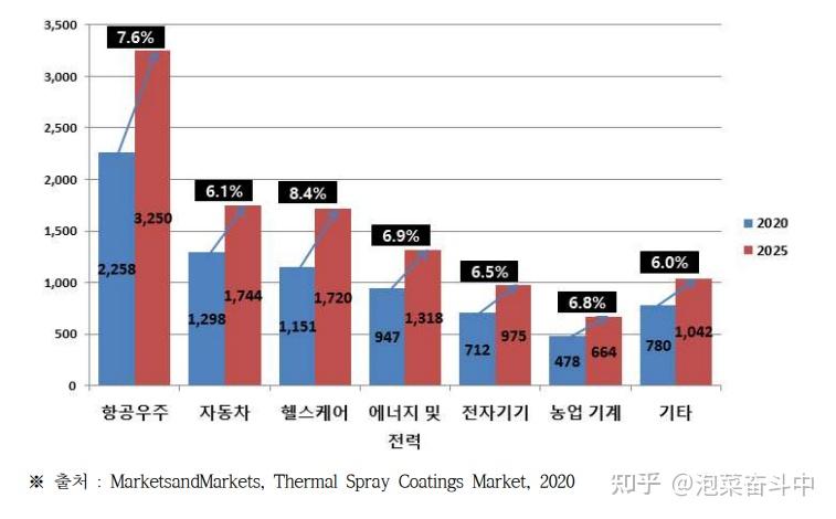 讓我們在看看一下熱噴涂市場的需求終端都在哪里: