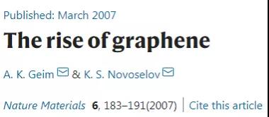 該文2007年由英國曼徹斯特大學(xué)的A. K. Geim和K. S. Novoselov教授發(fā)表于Nature Materials,而在2010年兩人就因為發(fā)現(xiàn)了石墨烯材料而獲得了諾貝爾物理學(xué)獎,并由此掀起了石墨烯以及各種二維材料的研究熱潮。截至2021年2月17日,該文累計被引28,528次。