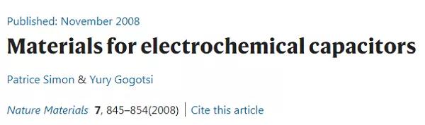 該文2008年由美國德雷塞爾大學(xué)的Yury Gogotsi和法國圖盧茲第三大學(xué)的Patrice Simon教授發(fā)表于Nature Materials,是超級電容器特別是非對稱超級電容器的開山之作。截至2021年2月17日,該文累計被引11,312次。
