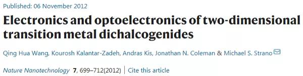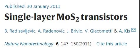 該文2011年由瑞士洛桑聯(lián)邦理工學(xué)院A. Kis教授等人發(fā)表于Nature Nanotechnology。截至2021年2月17日,該文累計被引9,140次。