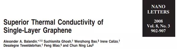 該文2008年由美國加州大學(xué)河濱分校Alexander A. Balandin教授等人發(fā)表于Nano Letters。截至2021年2月17日,該文累計被引8,652次。