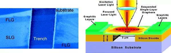 此文中,作者報道了借助共聚焦顯微拉曼光譜進行的懸浮單層石墨烯中導(dǎo)熱的首次實驗研究。根據(jù)拉曼G峰值頻率對激發(fā)激光功率的相對關(guān)系,作者計算出單層石墨烯的導(dǎo)熱系數(shù)室溫值高達5300 W/mK。極高的熱導(dǎo)率值表明,石墨烯在熱傳導(dǎo)方面可以勝過碳納米管(CNTs)。石墨烯的優(yōu)異導(dǎo)熱性能對于其可能的電子應(yīng)用是有益的,并表明石墨烯可作為應(yīng)用于熱管理的優(yōu)異材料。已發(fā)現(xiàn)的石墨烯出色的熱學(xué)性能說明石墨烯可作為光電,光子學(xué)和生物工程學(xué)中的熱管理材料,這拓寬了其應(yīng)用范圍。