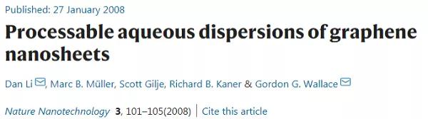 該文在2008年由澳大利亞臥龍崗大學(xué)Gordon G. Wallace教授和Dan Li教授等人發(fā)表于Nature Nanotechnology。截至2021年2月17日,該文累計被引7,217次。