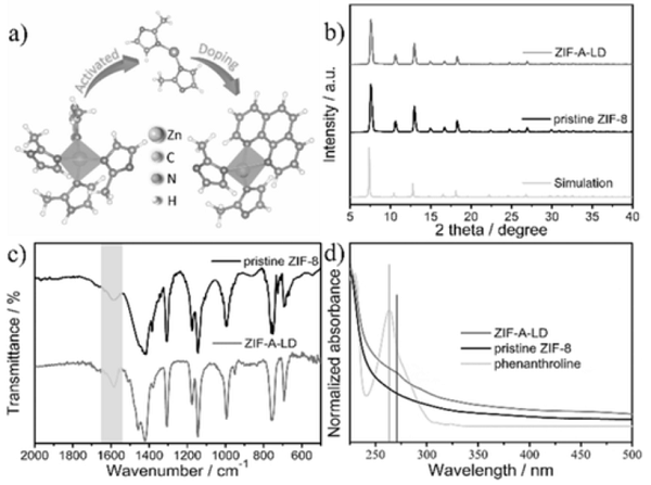 圖9 鄰二氮雜菲摻雜ZIF-8的結(jié)構(gòu)及其表征[9]