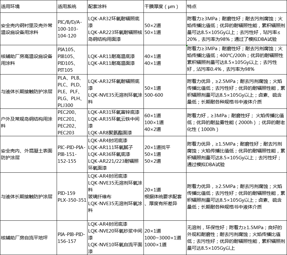 應(yīng)用部位:安全殼外混凝土砼面;核輔助廠房常溫設(shè)施設(shè)備;核輔助廠房混凝土砼面
