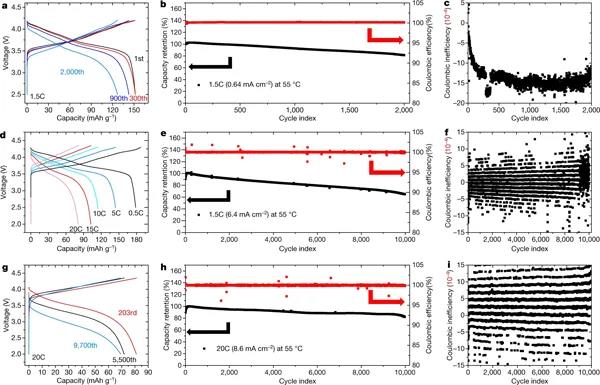 圖3 多層設(shè)計(jì)的固態(tài)電池的循環(huán)性能
