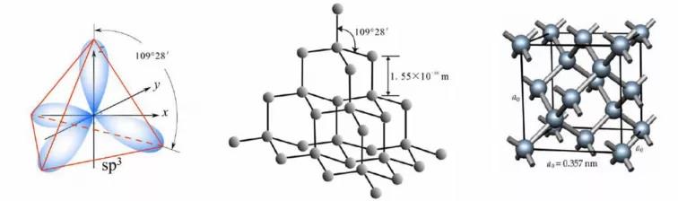 金剛石的雜化軌道電子云分布、原子結構和晶胞結構