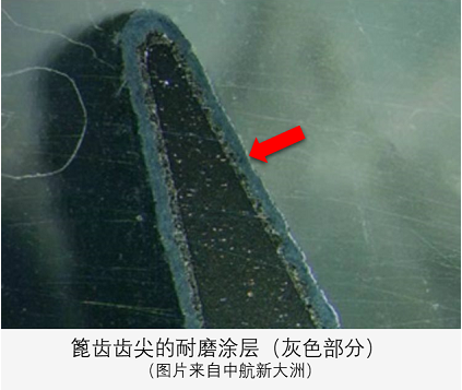 既然有“玻璃心”涂層,那肯定也有“勇敢的心”——耐磨涂層(Wear Resistant Coating),主要應(yīng)用于需要防止摩擦磨損以及沖擊磨損的發(fā)動(dòng)機(jī)零部件,例如軸類零件、W封嚴(yán)環(huán)以及低渦葉片緣板的配合面。當(dāng)然,在蜂窩封嚴(yán)系統(tǒng)中,也存在著耐磨涂層,用來(lái)防止篦齒的齒尖發(fā)生磨損。還有一種耐磨涂層,多用于軍用航空發(fā)動(dòng)機(jī)的壓氣機(jī)葉片,用來(lái)面對(duì)惡劣環(huán)境下的抗沖蝕磨損。