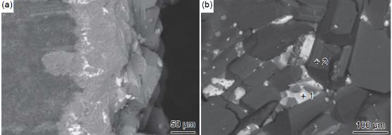 Jiang 等通過料漿浸漬在石墨表面制備出MoSi2-SiC-Si 涂層,然后采用氣相滲硅技術(shù)使之形成致密的涂層結(jié)構(gòu)(圖 4)。實(shí)驗(yàn)結(jié)果顯示,在室溫至 1600 ℃ ,涂層始終呈現(xiàn)出良好的抗氧化效果,1600 ℃ 氧化 220 h 后試樣失重為 0.96%。并在涂層中加入了 CrSi2 相,制備了 MoSi2- CrSi2-SiCSi 涂層。氧化過程中形成了氧擴(kuò)散系數(shù)較低的氧化層且氧化層中有分散的 MoSi2 和 CrSi2 相 , 在1600 ℃ 氧化 1190 h 后有 1.64% 的增重。