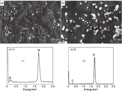 實(shí)驗(yàn)研究表明,超高溫陶瓷硼化物因具有優(yōu)異的抗氧化性能,可用來改性抗氧化硅基陶瓷涂層。硼化物改性的硅基涂層在 1200 ℃ 氧化時(shí)會(huì)生成B2O3,能夠起到很好的氧化防護(hù)作用;在 1200 ℃以上氧化時(shí),B 和 Si 的氧化物形成硼硅酸玻璃,其不僅可抑制 B2O3 在高溫下的蒸發(fā),且硼硅酸鹽玻璃自身高熔點(diǎn)、高黏度和氧擴(kuò)散速率低等特性均能提高涂層整體的抗氧化能力。Ren 等用原位反應(yīng)法在帶有 SiC 預(yù)涂層的 C/C 復(fù)合材料表面制備 ZrB2-SiC 抗氧化涂層,制備工藝采用價(jià)格較低的 B2O3、ZrO2、Si 和 C 粉末代替價(jià)格昂貴的 ZrB2粉末,降低了生產(chǎn)的成本,并且得到了較好的抗氧化性能。此外又采用液相燒結(jié)法制備出不同硼化物含量的 ZrB2、TaB2 和 HfB2 等改性 SiC涂層(圖 5),探究了各種硼化物在涂層中的抗氧化機(jī)理。Pourasad 等首先在石墨表面制備出功能梯度 SiC 涂層,之后通過以 Zr、Si 和 B4C 粉末為原料的原位反應(yīng)法制備 ZrB2-SiC 涂層,得益于氧化過程中穩(wěn)定 ZrSiO4 相的形成,涂層具有良好的抗氧化能力。Wang 等利用原位反應(yīng)法制備了添加硅化物(WSi2、CrSi2 等)的 HfB2-SiC 涂層,并探究了其在 1700 ℃ 的抗氧化和抗燒蝕能力。結(jié)果顯示涂層在氧化和燒蝕過程中均能形成多相鑲嵌的玻璃層結(jié)構(gòu),表現(xiàn)出良好的抗氧化和抗燒蝕能力,其中 CrSi2 含 量 為 15%( 質(zhì) 量 分 數(shù) ) 的 CrSi2-HfB2-SiC 涂層可保護(hù) C/C 復(fù)合材料在 1973 K 氧化 415 h后失重 1.6%,氧乙炔火焰燒蝕 90 s 后質(zhì)量損失率為 4.56 × 10-5 g/s。Kovaleva 等采用新型多腔爆轟加速器(MCDS)技術(shù),在 C/C 復(fù)合材料表面制備了添加 Y2O3 和 Al 的 ZrB2-MoSi2 涂層,并在 1500 ℃對(duì)試樣進(jìn)行熱處理。結(jié)果顯示,在加入 Y2O3 后,ZrO2 的穩(wěn)定性得到提升,SiO2 的分布也更加均勻。Astapov 等利用自蔓延高溫合成法合成復(fù)合粉體,再結(jié)合熱壓法制備出 ZrSi2-MoSi2-ZrB2 涂層,研究了其在 1400 ℃ 的氧化動(dòng)力學(xué)和機(jī)理,證實(shí)了該涂層保護(hù)機(jī)制的有效性。